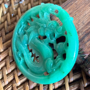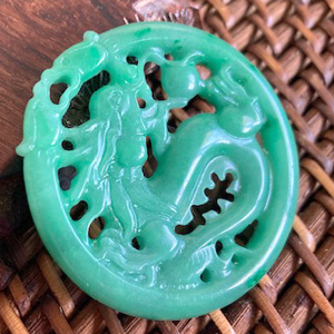 中央に龍モチーフ、周囲にしっぽを配したオリエンタルデザインの翡翠モチーフ。