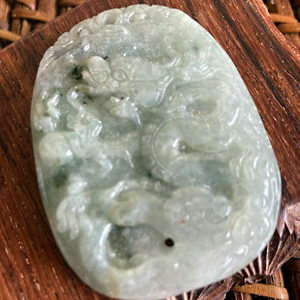 立体彫で龍が全面に彫られた上質なお品。上下に穴があり、紐などが通せます。